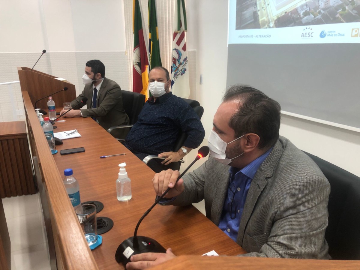 Reunião aconteceu na tarde de segunda-feira (18) na Sala de Sessões; com participação a direção do Hospital Mãe de Deus, Construtora Grupo Pezzi, direção do Hospital Santa Luzia e os Vereadores para viabilidade da construção do futuro complexo hospitalar do município.