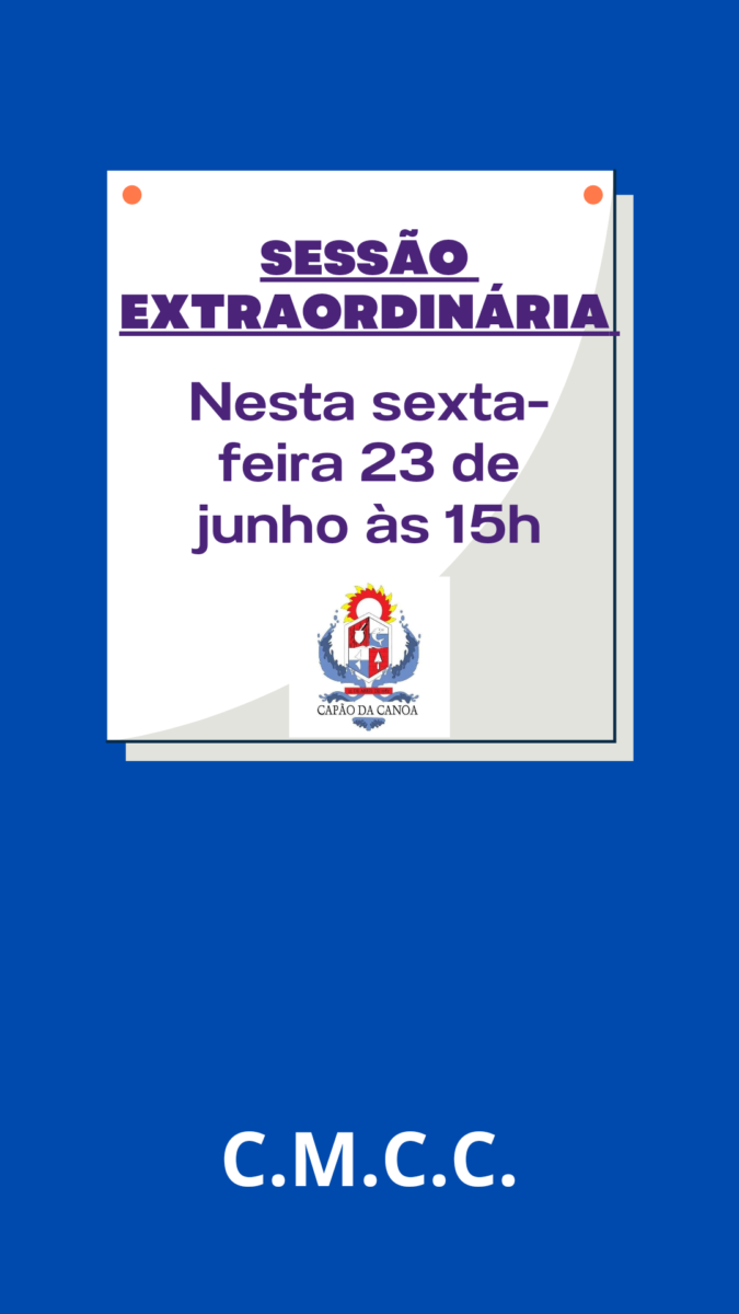 Nesta sexta-feira, 23 de junho haverá Sessão Extraordinária na Sala de Sessões Manoel Fernandes da Silveira, no horário das 15h.
