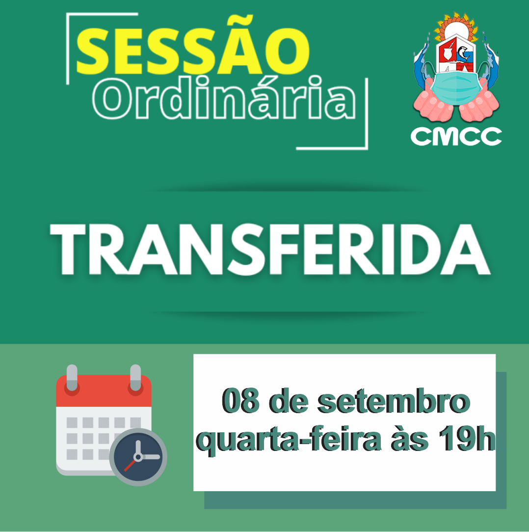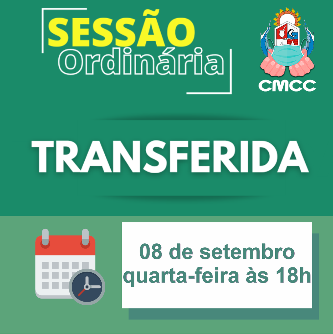 A CÂMARA MUNICIPAL DE CAPÃO DA CANOA COMUNICA QUE A SESSÃO ORDINÁRIA DO DIA 06/09/2021 FOI TRANSFERIDA PARA O DIA 08/09/2021, ÀS 18h.