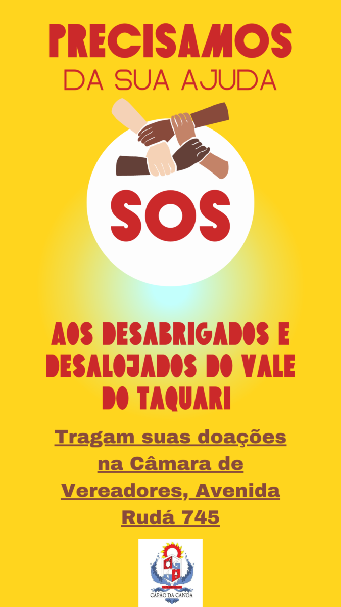 Você pode trazer suas doações na sede do Legislativo, na Avenida Rudá 745, Centro de Capão da Canoa.